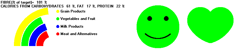 As described in lesson 14 you can display a simpler version of the nutrient analysis summary which does not require an understanding of the significance of the numeric values of sources of calories. This approach is called "Report Card Marks" and it only requires an understanding that a mark of 50 is poor and 100 is good.